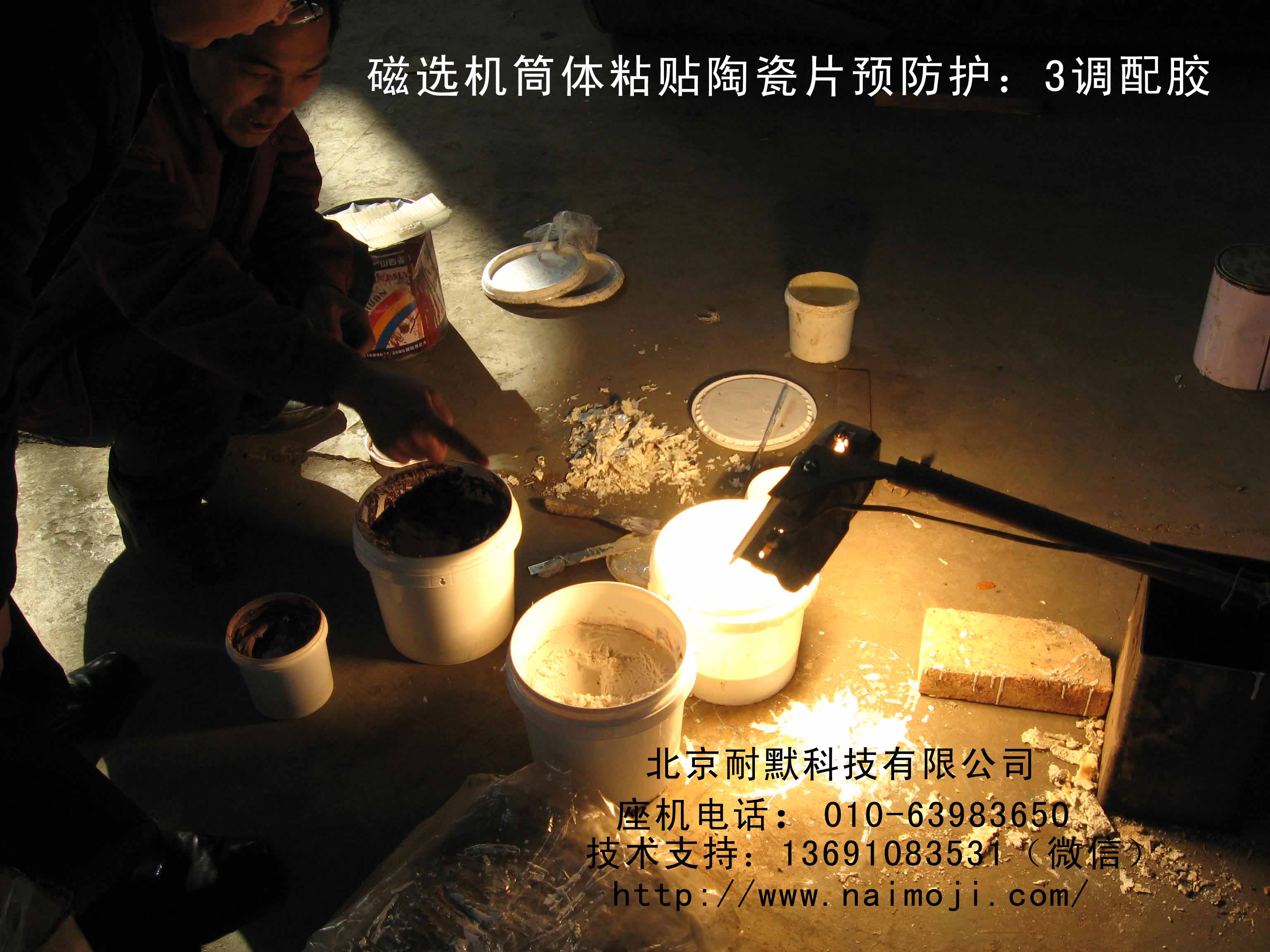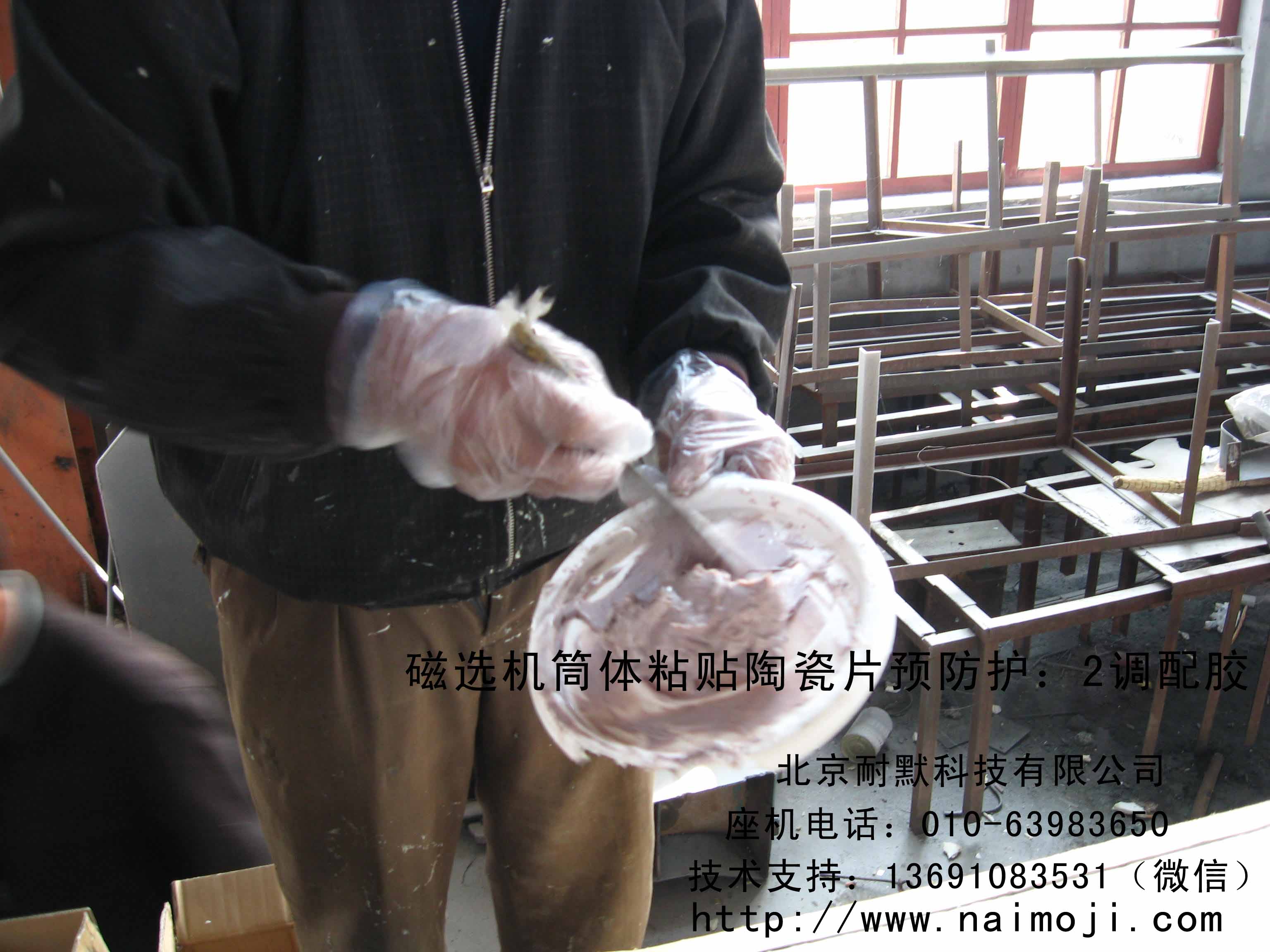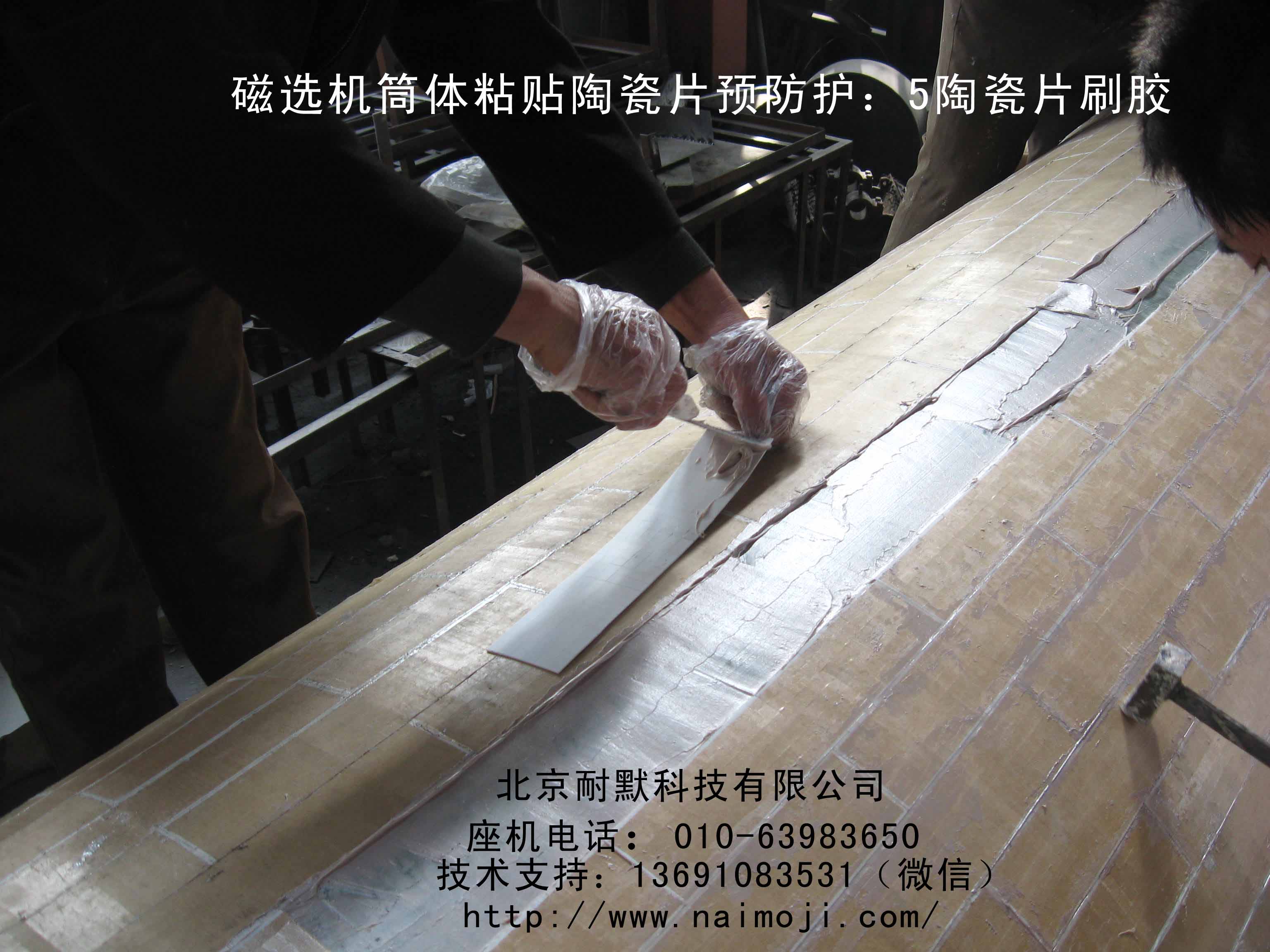北京耐磨公司經過三年的技術攻關終于攻克了磁選機不銹鋼滾筒磨損難題, 選用高強度陶瓷膠將95氧化鋁陶瓷片粘貼在筒體表面,現將工序說明如下: